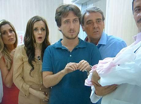 Quando o médico aparece carregando um bebê ruivinho, Marcelo se emociona: “foi tudo bem, doutor? Meu filho nasceu bem? Posso ver a Priscila?”. O médico, então, indaga se ele não quer ver os outros bebês, e todos ficam chocados: “o resto?!”.